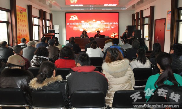 為深入學習貫徹十八屆六中全會精神,把全面從嚴治黨落到實處,12月16日下午,西關(guān)街道邀請秦州區(qū)委黨校高級講師王永利在天水市軍休所三樓會議室為街道社區(qū)黨員干部及居民黨員代表近百人作了輔導報告,并就基層黨員關(guān)心的問題作了現(xiàn)場互動交流。
