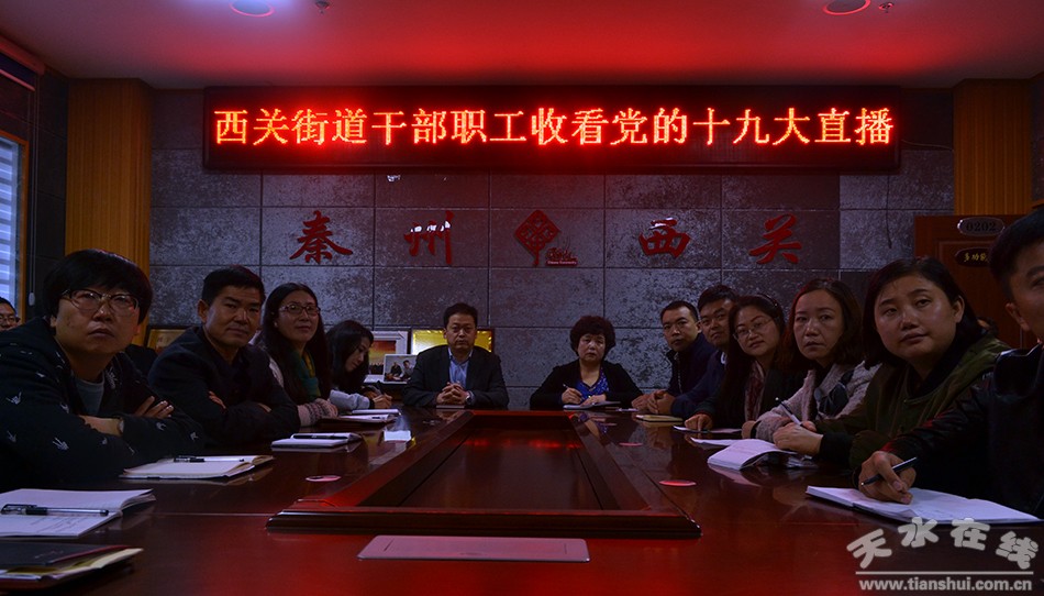 記者來到西關(guān)街道、大城街道、天水郡蓮?fù)ど鐓^(qū),看到全體街道干部正在認(rèn)真收看電視直播,聆聽習(xí)近平同志所作的報告,切身感受黨的十九大開幕盛況。