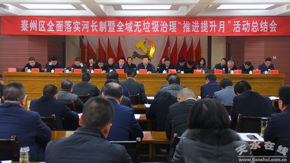 (秦州區(qū)外宣辦)12月11日,秦州區(qū)召開全面落實河長制暨全域無垃圾治理“推進(jìn)提升月”活動總結(jié)會,對“推進(jìn)提升月”活動進(jìn)行總結(jié),交流工作經(jīng)驗,安排部署下一階段工作。市委常委、區(qū)委書記雷鳴出席會議并強(qiáng)調(diào),建設(shè)“河暢、堤固、水清、岸綠、景美”的美好家園,確保兩項工作持續(xù)深入推進(jìn)。