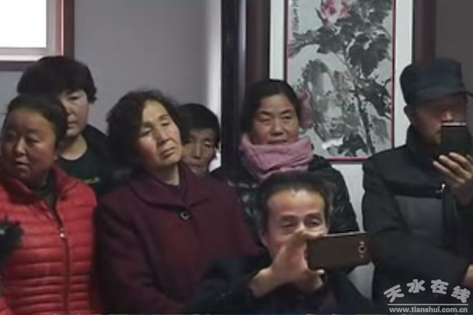 一大早,記者來到秦州區(qū)石馬坪馬虎娃家中時,房子里已經(jīng)擠滿了演員和前來看戲的村民,雖然是數(shù)九寒天,但這里卻是一派熱熱鬧鬧的景象。《香山寺還愿》、《下四川》、《二進(jìn)宮》一曲接著一曲,演員們唱得認(rèn)真,觀眾們看得入神,興起之余一些愛好者們也自告奮勇也上去唱一段。觀眾任勝利說:“這是我們秦州人自己的曲目,我非常愛看這個秦州小曲,因?yàn)檫@是農(nóng)村的劇目,非常喜歡!