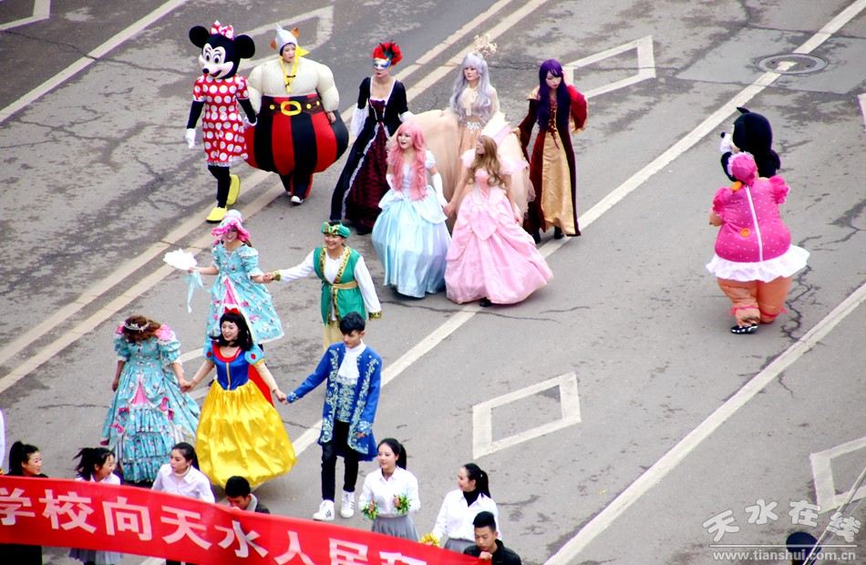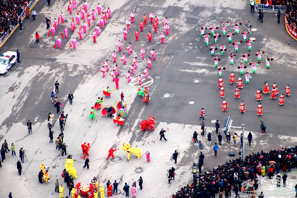 上午十時,匯演正式拉開帷幕。匯演路線從青年南路南端丁字路口開始,沿民主路、大同路、解放路進行行進式表演,重點表演區(qū)域為青年南北路十字路口、華聯(lián)商廈十字路口、伏羲廟東門十字路口。