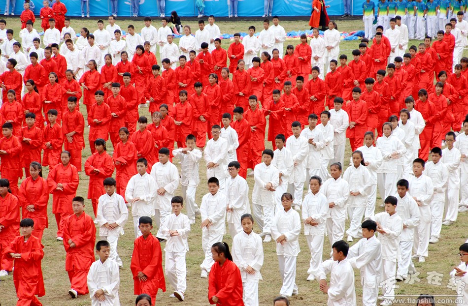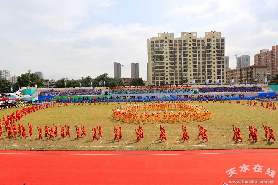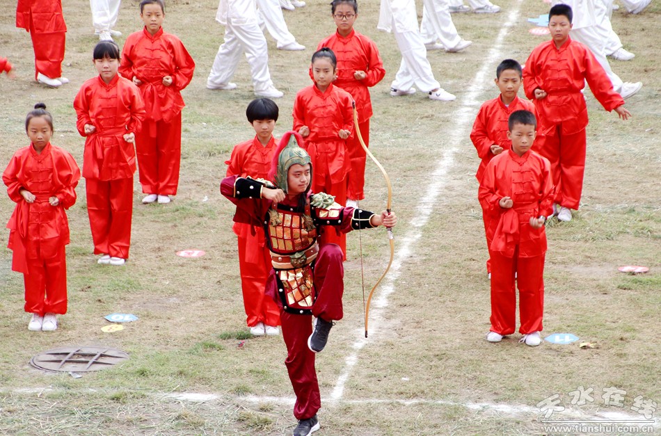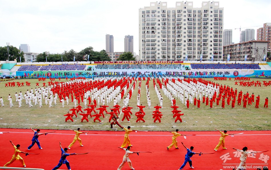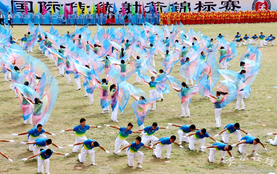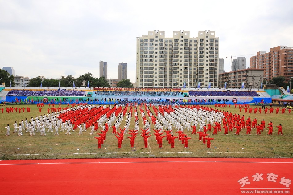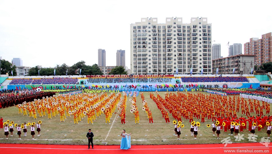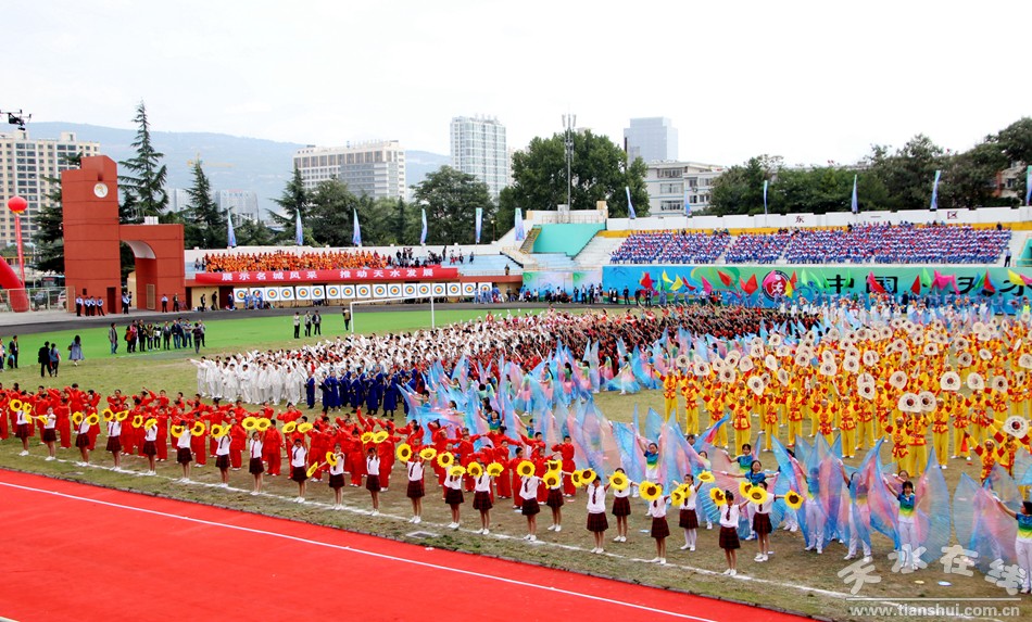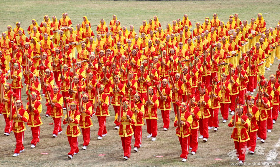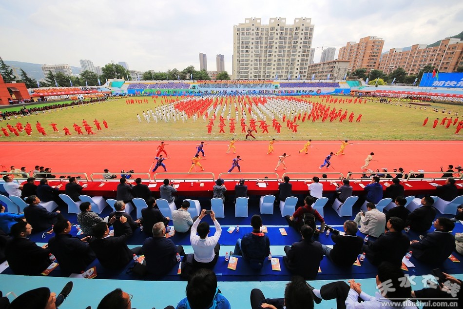 上午10:15開(kāi)幕式全民健身展演活動(dòng)正式開(kāi)始,由3000多名演員組成的5個(gè)表演隊(duì)為大家?guī)?lái)了精彩的文體展演。展演共分為《李廣射禮》、《伏羲太極》、《奔競(jìng)不息》、《激情飛揚(yáng)》、《秦州古韻》、《放飛未來(lái)》6個(gè)篇章。整個(gè)文體展演以磅礴的氣勢(shì)和精彩的表演,把秦州這座古城蓬勃向上、穩(wěn)定發(fā)展的風(fēng)采表現(xiàn)的淋漓盡致,集中展現(xiàn)了大美秦州深厚的歷史文化底蘊(yùn),廣大人民群眾豐富多彩的精神文化生活和積極進(jìn)取開(kāi)拓未來(lái)的精神風(fēng)貌。