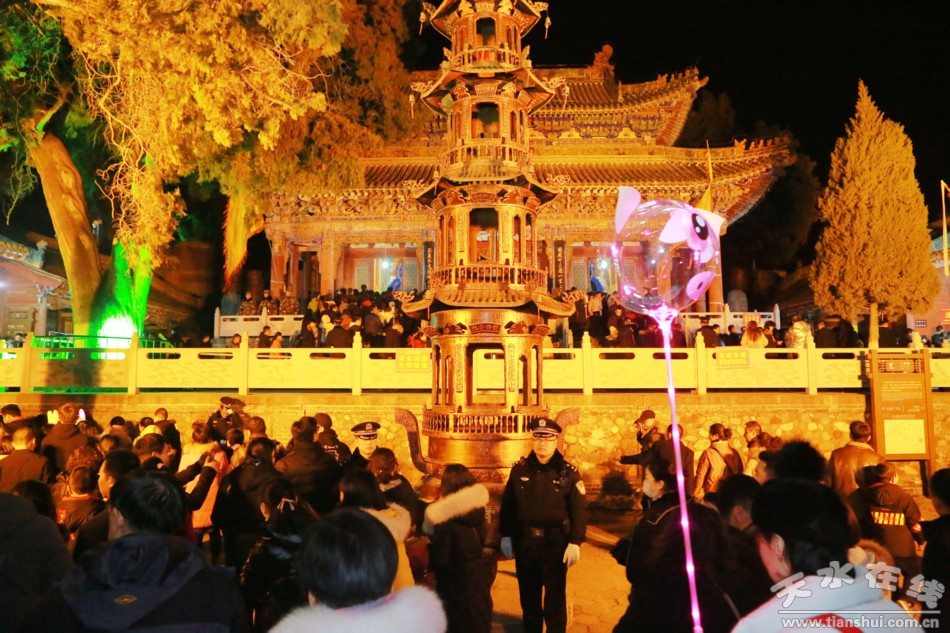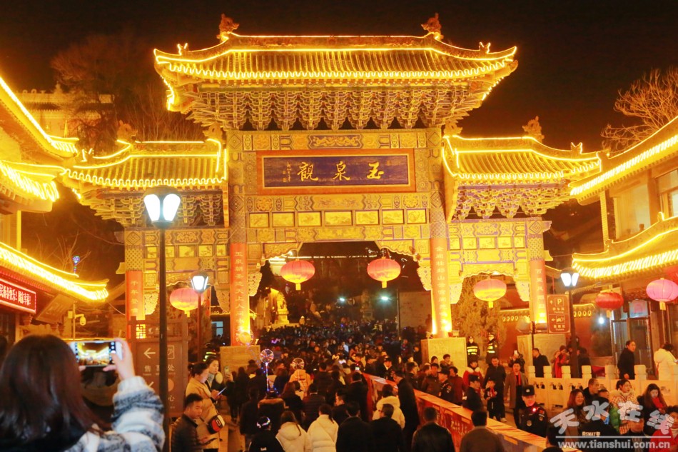 從昨晚開始,天水市民和外地游客涌向玉泉觀開始“上九朝觀”。 朝觀是天水當?shù)亓鱾鲾?shù)百年的特色民俗文化活動之一,也是玉泉觀傳統(tǒng)廟會。相傳,農(nóng)歷正月初九為玉皇大帝圣誕之日,這一天,當?shù)孛癖姺隼蠑y幼便來這里朝拜玉皇大帝等,以祈求好運連連、全家幸福、國泰民安。