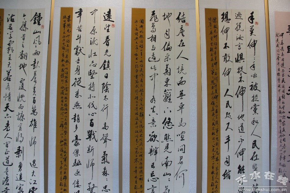 本次展覽展出了100幅將軍作品、100幅一畫開天文化藝術協(xié)會會員作品、50多幅平南鎮(zhèn)農(nóng)民作品。參展的書法作品隸、行、楷、草種類齊全,繪畫作品或寫實或會意,風格多樣,主題突出,內(nèi)容豐富,給人以獨特的藝術感染力和強烈的凝聚號召力,既有中國書畫藝術的意趣與神采,又有軍人的骨氣與豪情,具有很高的藝術造詣,充滿了昂揚向上的正能量,更體現(xiàn)老一輩共產(chǎn)黨員艱苦奮斗、甘于奉獻的革命精神,也進一步提升了參展群眾的愛國主義熱情,提振了決戰(zhàn)脫貧攻堅、決勝全面小康的信心。