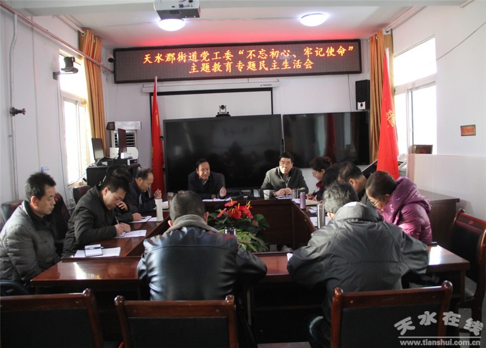 12月9日,天水郡街道黨工委召開“不忘初心、牢記使命”主題教育專題民主生活會,秦州區(qū)委主題教育領導小組辦公室第五巡回組組長王黎明到會指導。會議按照習近平總書記關于“四個對照”“四個找一找”的要求,從盤點收獲、檢視問題、深刻剖析、努力方向、改進措施方面做了深刻檢視剖析,開展了批評與自我批評。