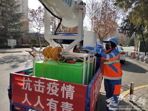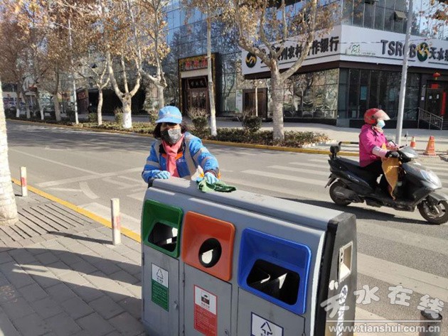 特殊時(shí)期有特殊要求,張保蘭每天要對(duì)青年南路的每一個(gè)果皮箱進(jìn)行消毒,嚴(yán)格按照要求用噴壺將消毒水均勻地噴灑在果皮箱的表面,之后便用沾了酒精的抹布仔仔細(xì)細(xì)地擦拭果皮箱的角角落落。確保消毒徹底,這樣的消毒工作她每天至少要做4次。由于果皮箱、公廁門(mén)把手、水龍頭等地方易滋生細(xì)菌,因此消毒時(shí)一點(diǎn)兒也不敢馬虎。只有工作比平時(shí)做得更細(xì)更好,才能徹底阻止疫情在公共區(qū)域的蔓延,保護(hù)市民的身體健康!
