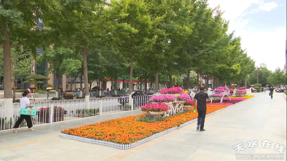 今年,秦州區(qū)住建局創(chuàng)新美化方案,豐富了鮮花品種,在市第一人民醫(yī)院、六中、百貨大樓及龍城廣場附近擺放孔雀草、矮牽牛、雞冠花、長春花、金葉薯等時令鮮花,并搭配大型綠植布置成大型花壇。另外,花卉擺放整體采用規(guī)則式布置形式,利用鮮花高低和顏色變化,在街邊擺放花架、花箱、地栽和花壇,達(dá)到簡潔、大氣、整齊的效果,真正讓城區(qū)主干道成為多彩靚麗的花道。