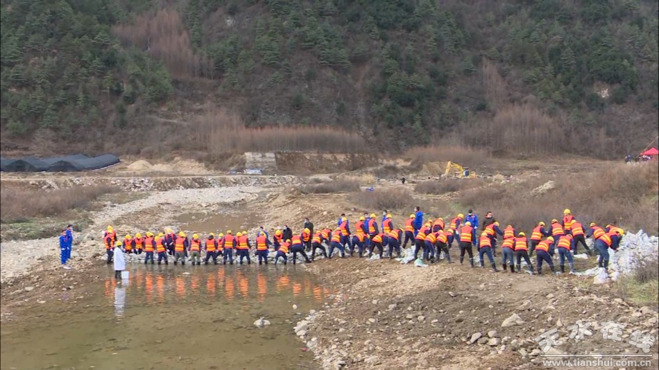 7日下午14點30分,企業(yè)巡查人員首先發(fā)現(xiàn)情況后向負責人匯報,企業(yè)第一時間采取措施,封堵泄漏源并向市生態(tài)環(huán)境局秦州分局報告,隨后啟動應急預案,指揮各單位前往現(xiàn)場開展工作。應急專家組依據現(xiàn)場污染物特性研究決定,由娘娘壩政府組織人員在河道寬闊處設置兩級沉降池,并構筑導流壩,加固導流壩外排河水,減少污染量,并由技術人員向沉降池投加藥劑輔助沉淀重金屬,同時區(qū)環(huán)監(jiān)站負責多級沉降池水檢測。企業(yè)救援隊在源頭構筑攔截壩加固尾礦干堆場,現(xiàn)場搶險救援與疏散同時進行。