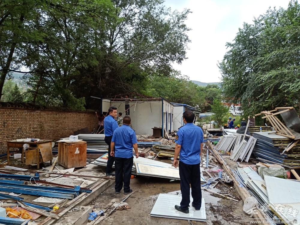 為消除安全隱患,8月19日,秦州區(qū)城市管理綜合執(zhí)法局對(duì)七里墩高速公路口旁工地私自搭建彩鋼房進(jìn)行了依法拆除。