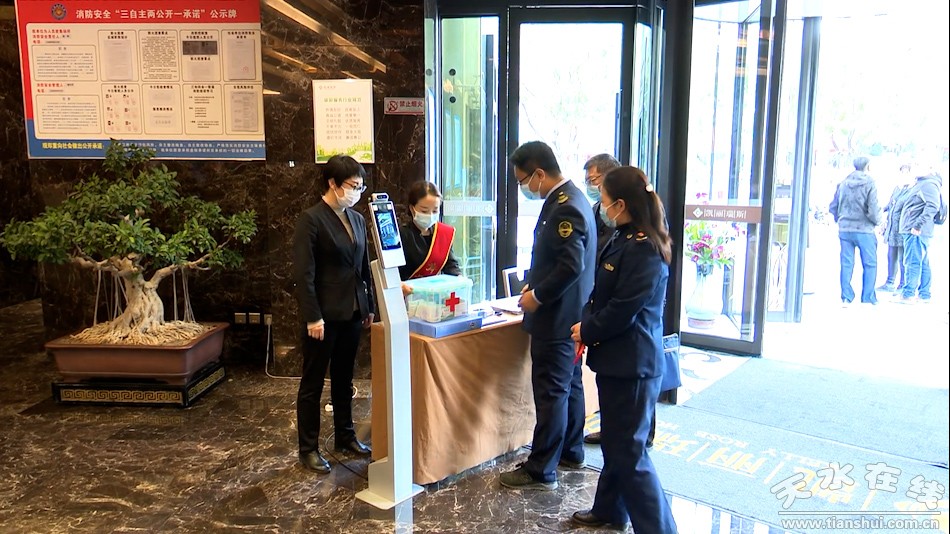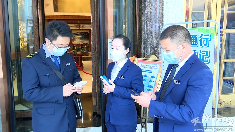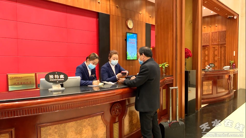 22號(hào)上午,記者在采訪中看到,秦州區(qū)賓館飯店,均在大廳進(jìn)口設(shè)置防疫測(cè)溫臺(tái),上面擺放有各類消毒用品、備用口罩、來(lái)訪人員登記本、疫情防控流程本等,并在進(jìn)口處設(shè)立掃碼指示牌、自動(dòng)測(cè)溫裝置等。