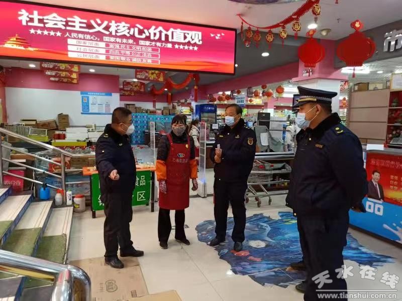 53個超市里,170名執(zhí)法人員第一時間充當(dāng)“守門員”測體溫、查驗碼、設(shè)一米線、分出入道口,為市民購物樹起第一道安全防線。
