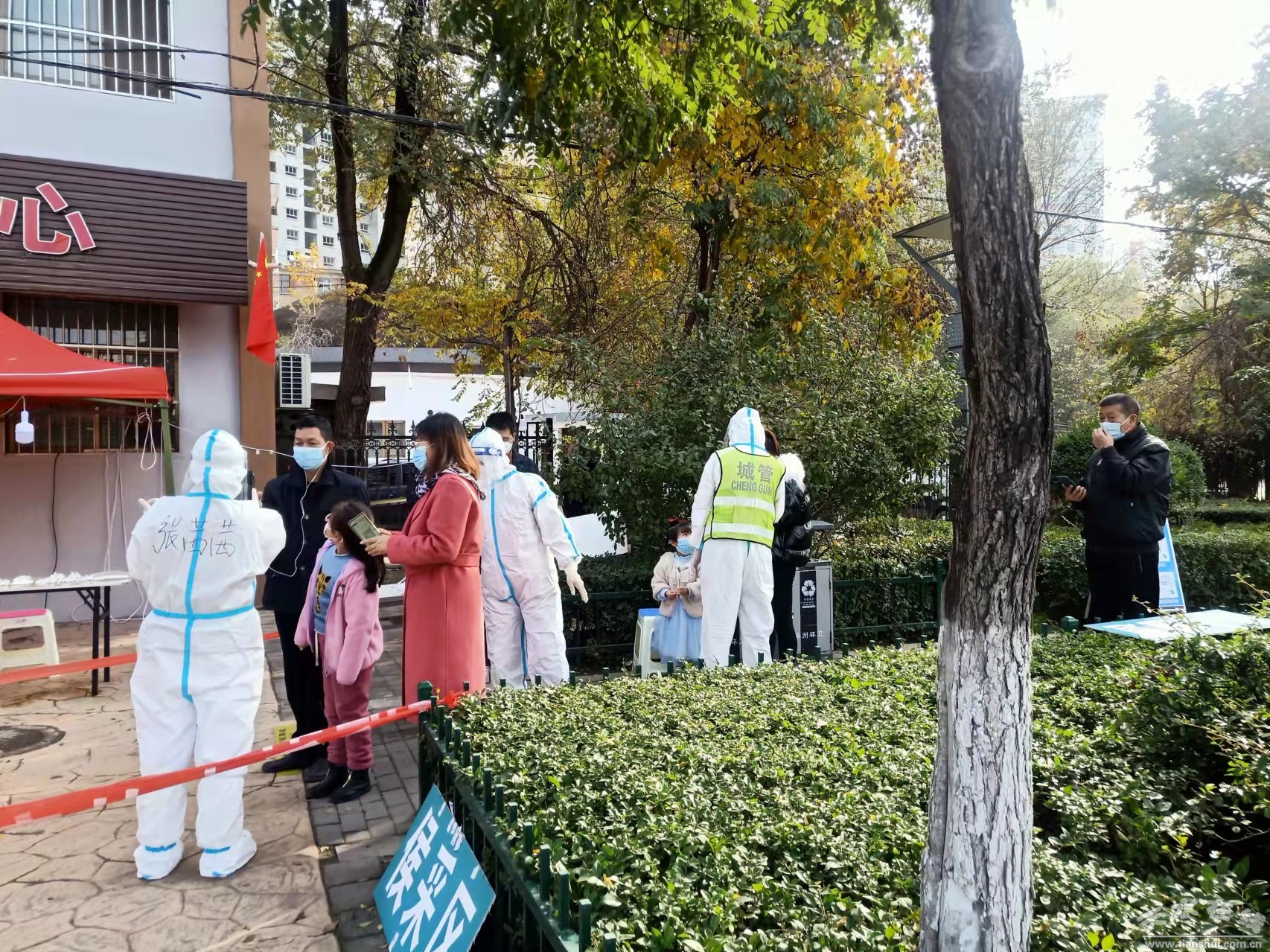“請保持1米線的間隔距離”、“請?zhí)崆按蜷_健康碼、戴好口罩”;城區(qū)7個辦事處123個核酸檢測采集點上,城管隊員不停的提醒告知大家,維護秩序,每一輪全員檢測,采樣點上,始終都有他們忙碌、疲憊的身影。