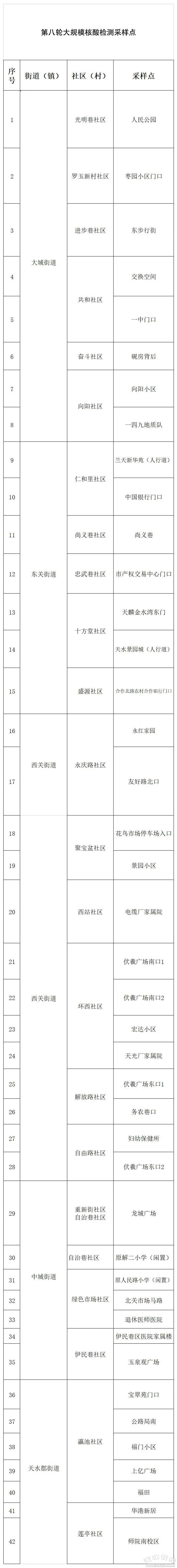 根據(jù)全區(qū)新冠肺炎疫情防控安排,為科學、精準落實防控措施,保證全員核酸檢測應檢盡檢、不漏一人,快速阻斷疫情傳播鏈條,切實保障人民群眾生命安全和身體健康,區(qū)新冠肺炎疫情聯(lián)防聯(lián)控領導小組決定,于11月6日上午7時起,在七個街道及玉泉鎮(zhèn)、太京鎮(zhèn)、中梁鎮(zhèn)和皂郊鎮(zhèn)開展第八輪大規(guī)模核酸檢測,現(xiàn)將有關事項通告如下: