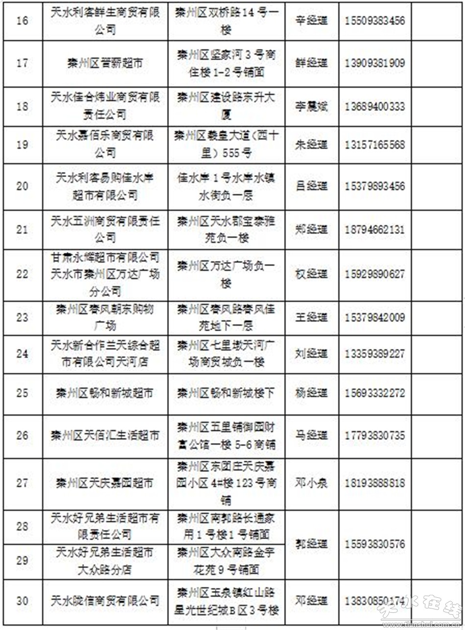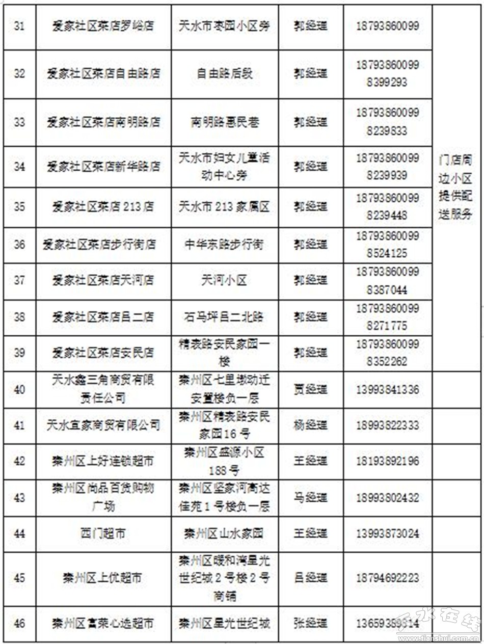 1.秦州區(qū)疫情期間生活必需品保供超市名單