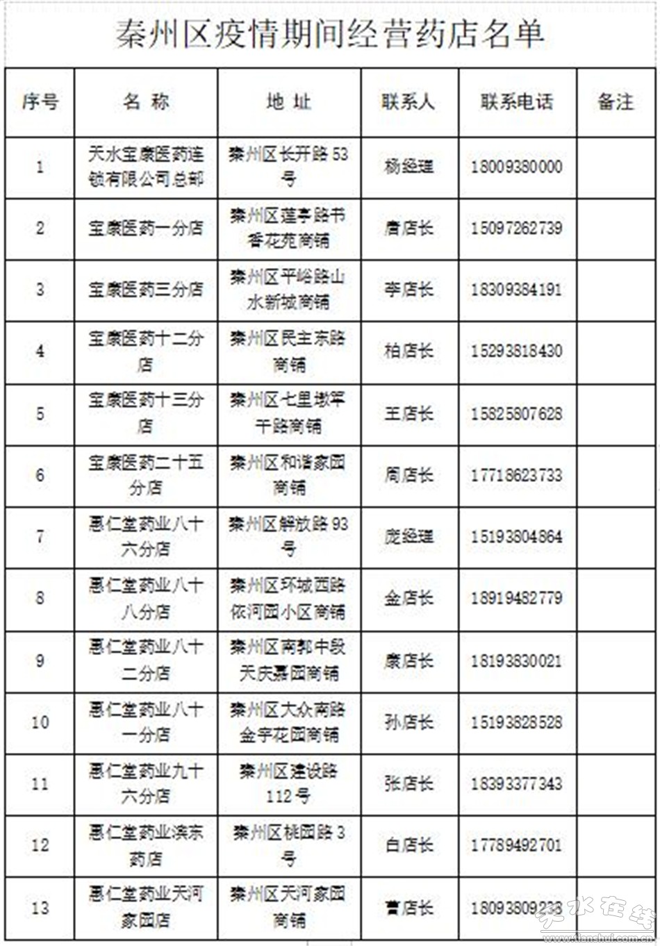 2.秦州區(qū)疫情期間經(jīng)營藥店名單