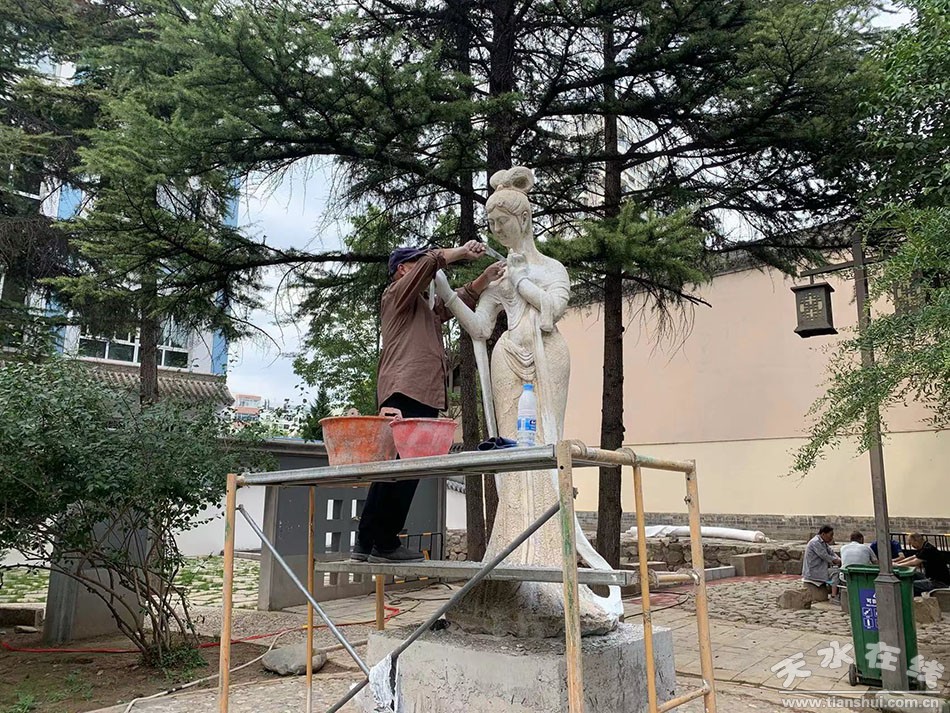在做好園林綠化管護的同時,區(qū)園林建設(shè)服務(wù)中心還對人民公園內(nèi)的蘇慧雕塑進行了修復(fù)。在現(xiàn)場,施工人員嚴(yán)格按照修復(fù)方案,全面打磨拋光,去掉表面的油污,認(rèn)真噴涂油漆,修復(fù)后的蘇慧雕像將煥然一新,增強景觀效果。