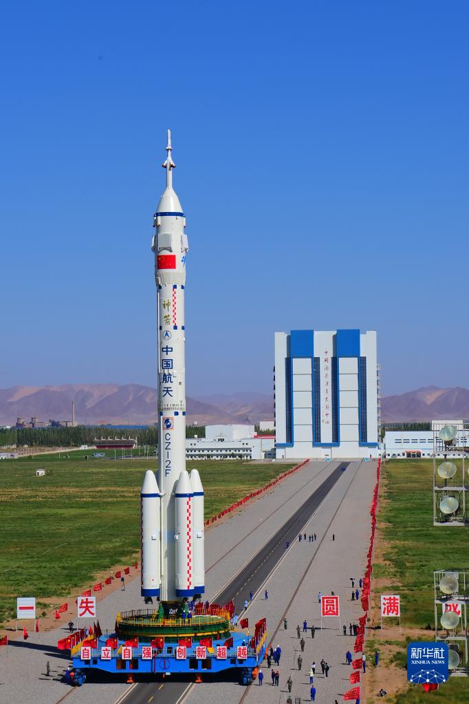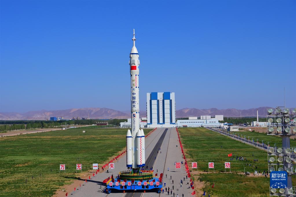 5月29日,神舟十四號載人飛船與長征二號F遙十四運(yùn)載火箭組合體準(zhǔn)備轉(zhuǎn)往發(fā)射區(qū)。新華社發(fā)(汪江波 攝)