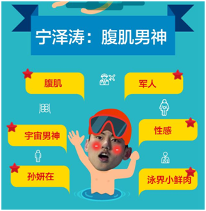與大家以往印象中的運動員形象不同,在這個全部由90后組成的特殊組合身上,陽光率真的個性與自信不裝的性格表露無遺,向全世界展現(xiàn)了中國90后的風(fēng)貌。360搜索借助大數(shù)據(jù)力量,分析了“四天王”網(wǎng)紅標(biāo)簽和人群屬性,并分析其走紅理由。