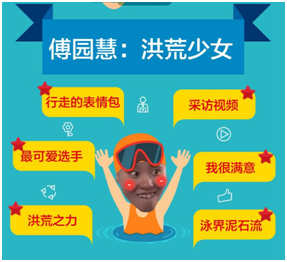 在8日的采訪之前,傅園慧只是一名普通的運動員,而女子仰泳也因奪牌希望渺茫而鮮有人關(guān)注。這位96年出生的妹子用其夸張豐富的表情與幽默風(fēng)趣的語言征服了千萬網(wǎng)友,她的采訪截圖迅速成為了本屆奧運會期間最火的表情包,與同樣出自她口中的“洪荒之力”和蚊帳、拔罐一起被網(wǎng)友戲稱為里約奧運的“新四大發(fā)明”。