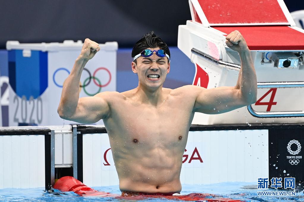 7月30日,汪順在東京奧運會游泳男子200米個人混合泳決賽中奪冠后慶祝。 新華社記者 杜宇 攝