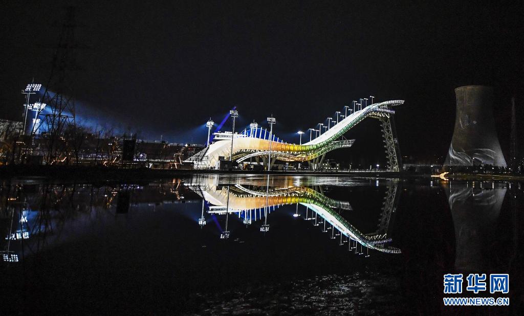 這是2019年12月14日拍攝的北京首鋼滑雪大跳臺夜景! ⌒氯A社記者 夏一方 攝