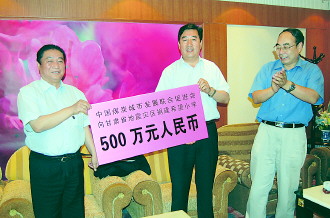 6月3日上午,中國煤炭城市發(fā)展聯(lián)合促進(jìn)會(huì)會(huì)長步云吉、副會(huì)長饒宏民及省煤炭局有關(guān)負(fù)責(zé)人從蘭州趕赴我市察看受災(zāi)情況,并為我市捐贈(zèng)500萬元用于受災(zāi)學(xué)校重建。市領(lǐng)導(dǎo)張景輝、李文卿、張懷仁、張健、郭奇若參加了捐贈(zèng)儀式。