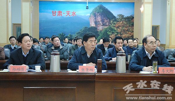 天水市委書記、市人大常委會主任張景輝,市委副書記、市長李文卿,市委常委、紀(jì)委書記楊維俊等在天水分會場收看會議。