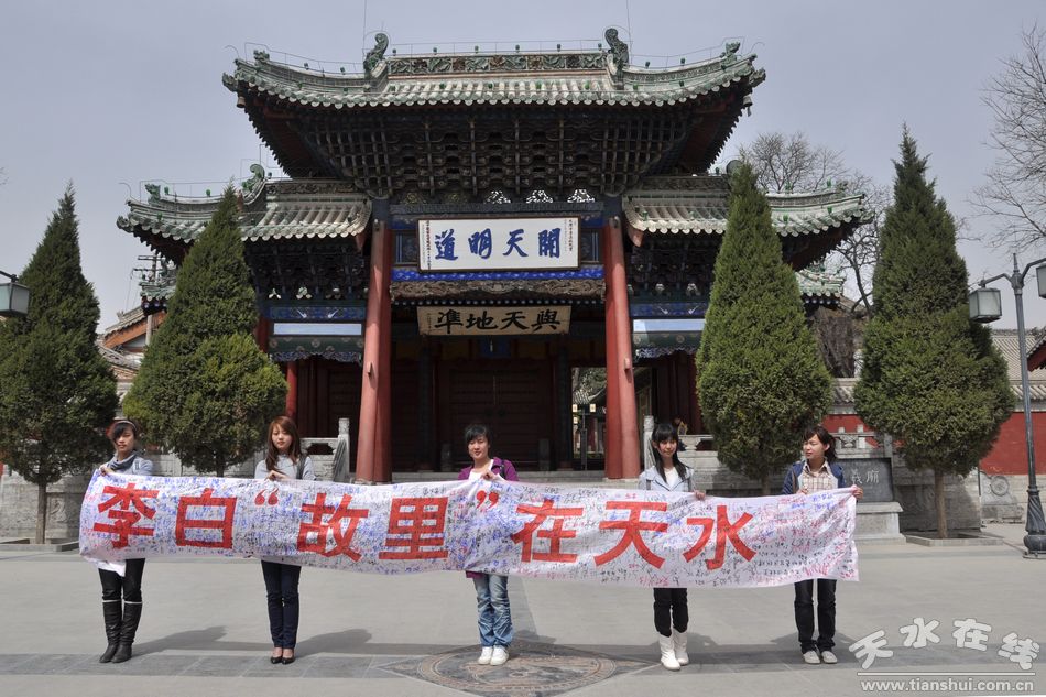 早前媒體曾有報道,2009年下半年以來,四川江油與湖北安陸兩地展開了關(guān)于“李白故里”的爭論。今年3月,著名文學(xué)評論家雷達(dá)又發(fā)表《李白“故里”在甘肅秦安》一文,經(jīng)網(wǎng)絡(luò)轉(zhuǎn)載后,在甘肅天水引發(fā)了一場由萬名網(wǎng)友自發(fā)組織的“李白故里在秦安縣、為李白故里正名”的簽名活動。