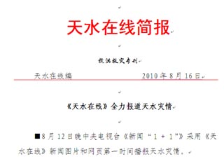 8月14日上午,天水市委書記、市人大常委會(huì)主任張景輝,市委副書記、市長(zhǎng)李文卿等市領(lǐng)導(dǎo)來到天水日?qǐng)?bào)社、天水廣播電視臺(tái),看望慰問在宣傳支援舟曲搶險(xiǎn)救災(zāi)和我市12日特大暴雨洪災(zāi)搶險(xiǎn)救災(zāi)報(bào)道中連續(xù)奮戰(zhàn)的一線新聞工作者。張景輝要求,各級(jí)新聞媒體要堅(jiān)持正確輿論導(dǎo)向,把握?qǐng)?bào)道重點(diǎn),進(jìn)一步總結(jié)完善提高新聞媒體報(bào)道突發(fā)事件、全局性事件和典型事例的能力和水平,及時(shí)、全面、準(zhǔn)確地宣傳中央和省、市抗洪搶險(xiǎn)救災(zāi)工作的決策部署,為搶險(xiǎn)救災(zāi)工作營(yíng)造良好的輿論氛圍。