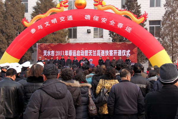 天水市委常委、政法委書記韓岱成出席儀式,并宣布2011年春運啟動。