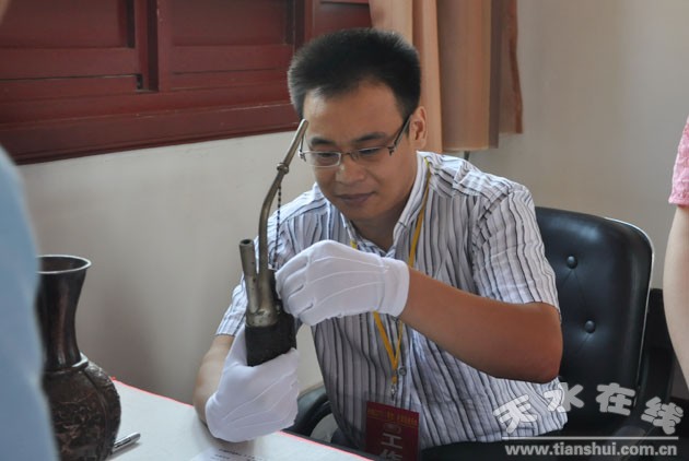 8月2日上午,由天水市政府主辦,市政府節(jié)會(huì)辦、市旅游局、市博物館、市文化文物出版局、麥積山風(fēng)景名勝區(qū)管委會(huì)、市收藏協(xié)會(huì)承辦的央視《尋寶——走進(jìn)天水》海選活動(dòng)正式啟動(dòng)。鑒寶專家丘小君、蔡國(guó)聲、王注貳、李彥君、金啓5位權(quán)威鑒寶大師親臨海選現(xiàn)場(chǎng),為來自民間的瓷器、字畫、青銅、雜項(xiàng)4個(gè)類別的1000多件藏品“驗(yàn)明正身”。