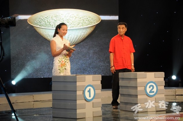 面對美女的宋代斗笠碗,3名男持寶人中的2名以碗口不圓為由,認為不能稱之為寶。而范師傅的齊家三孔玉刀,其他3名持寶人覺得3個孔眼大小不一且刀柄處紋路不清,將它排在“寶”之外;在斗3號候選寶物——清晚著名畫家蒲華的山水畫時,其他3名持寶人一致認為,該畫畫筆遒勁有力,線條流暢自然,不失為名家之作,但蒲華大師為海派畫師,故其作品不能代表天水當?shù)匚幕,也不能入選天水“民間國寶”;在對4號候選寶物評說時,1號、2號、3號持寶人認為,這一對商代青銅方鼎堪稱一級國寶,但屬國外回流之物,故不能被評為天水“民間國寶”。