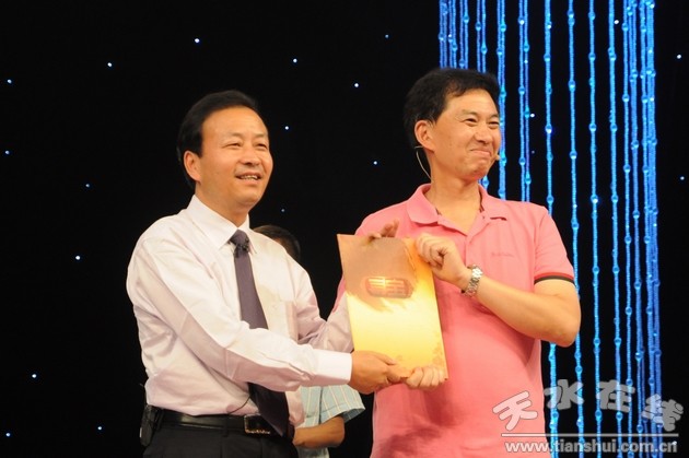 (市委常委、副市長郭奇若向持寶人頒發(fā)“天水民間國寶”證書)