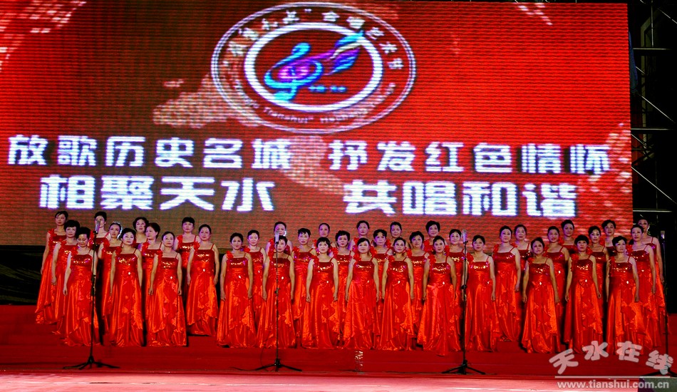 市委常委、宣傳部長(zhǎng)王光慶觀看演出。值得一提的是河北唐山金色號(hào)角合唱團(tuán)特意為本次合唱節(jié)創(chuàng)排了一首《天水是一個(gè)美麗的地方》的歌曲,受到了現(xiàn)場(chǎng)觀眾的熱烈歡迎。