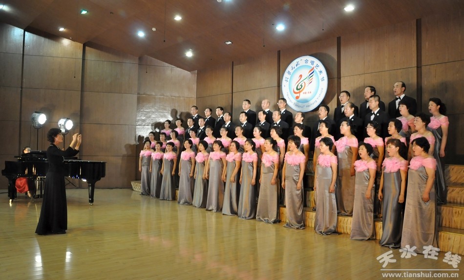 8月9日下午,參加第二屆“相聚天水”合唱藝術(shù)節(jié)的第三組12支代表隊(duì)在天水師院音樂(lè)廳進(jìn)行比賽。圖為甘肅蘭州新港城藝術(shù)合唱團(tuán)《憶秦娥婁山關(guān)》《夜夜的晚夕里夢(mèng)見(jiàn)》《中國(guó)春潮》
