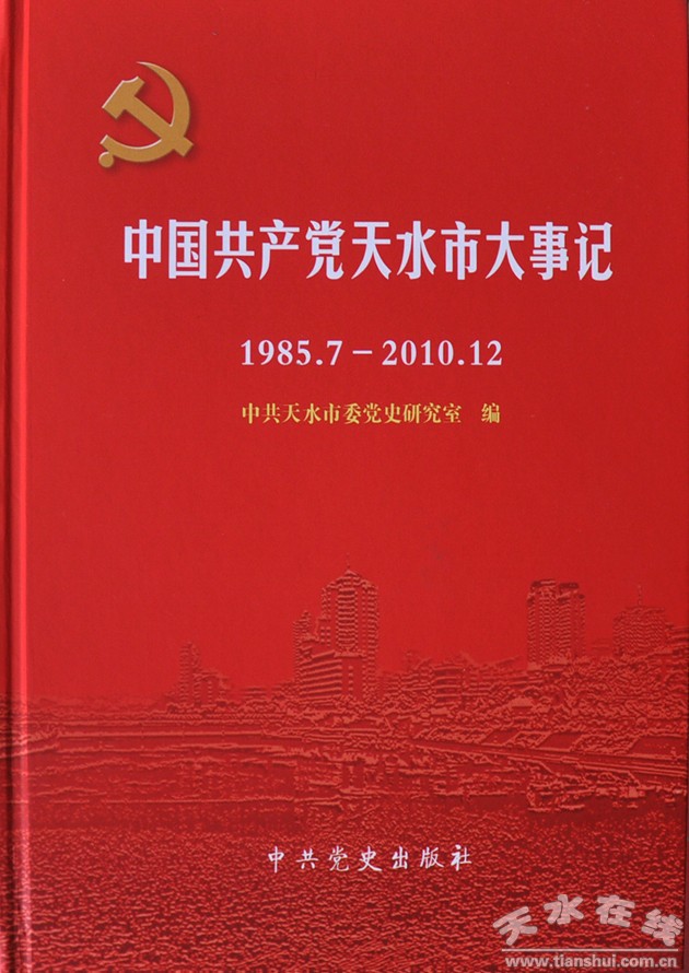 為了系統、全面、真實地展示天水市建市25周年的發(fā)展變化,總結經驗、吸取教訓,提供借鑒和啟示,中共天水市委黨史研究室組織編輯的《中國共產黨天水市大事記》(1985.7—2010.12),于近日由中共黨史出版社公開出版。
