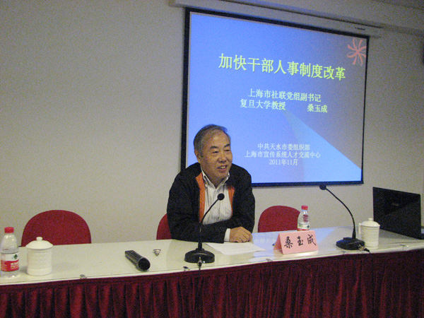 上海市社聯(lián)黨組副書記復(fù)旦大學(xué)教授桑玉成作《推進(jìn)干部人事制度改革》專題報(bào)告
