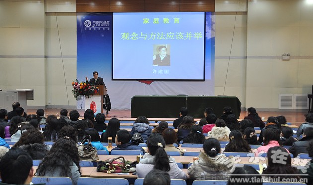 彭鴻嘉主持講座時(shí)說,家庭教育是教育兒童、青少年的起點(diǎn)和基點(diǎn),在孩子成長(zhǎng)過程中,家庭教育起著關(guān)鍵的作用。因此,我們要提高教育質(zhì)量,高度重視家庭教育,老師和家長(zhǎng)都要轉(zhuǎn)變觀念,講究科學(xué)的教育方法,重視孩子的綜合素質(zhì)培養(yǎng),“爭(zhēng)做合格父母,培養(yǎng)合格人才”。家庭教育的質(zhì)量水準(zhǔn),將決定著未來天水的發(fā)展水平和文明水準(zhǔn),希望廣大家長(zhǎng)要以高度的歷史使命感和社會(huì)責(zé)任感,做好教育培養(yǎng)子女的大事,使我們的孩子能更加堅(jiān)強(qiáng)、自信、健康、快樂地成長(zhǎng),最終擁有成功、美滿的人生。
