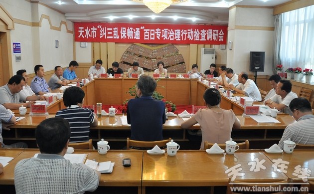在當(dāng)天下午召開(kāi)的天水市“糾三亂、保暢通”百日專(zhuān)項(xiàng)治理行動(dòng)檢查調(diào)研會(huì)上,市監(jiān)察局、糾風(fēng)辦、交警支隊(duì)、交通運(yùn)輸局、農(nóng)業(yè)局、林業(yè)局、畜牧局、天水高速公路管理處等部門(mén)結(jié)合工作實(shí)際,就開(kāi)展“糾三亂、保暢通”百日專(zhuān)項(xiàng)治理行動(dòng)進(jìn)展情況作了匯報(bào)。
