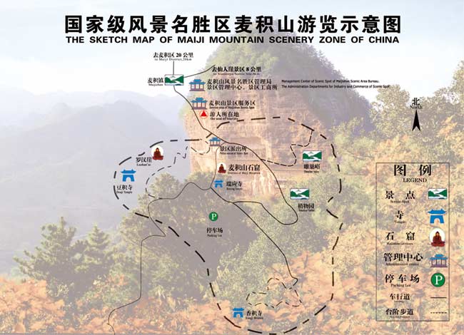 北進(jìn)路線:天巉高速路七里墩出口--天北高速公路--埠南路--羲皇大道東路--麥賈公路向南—麥積山景區(qū)