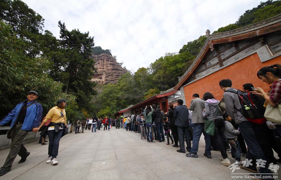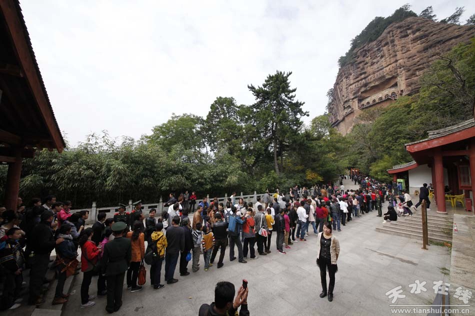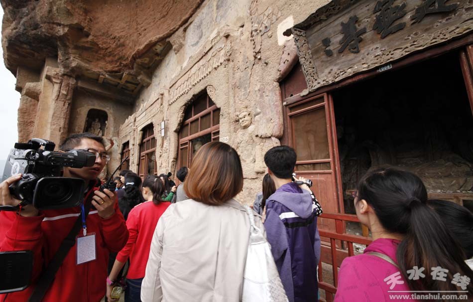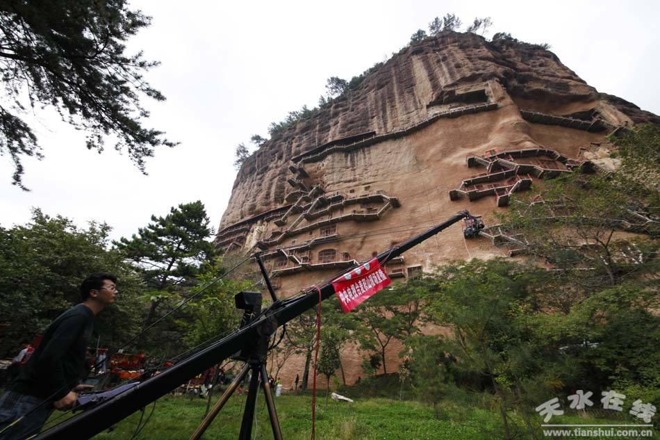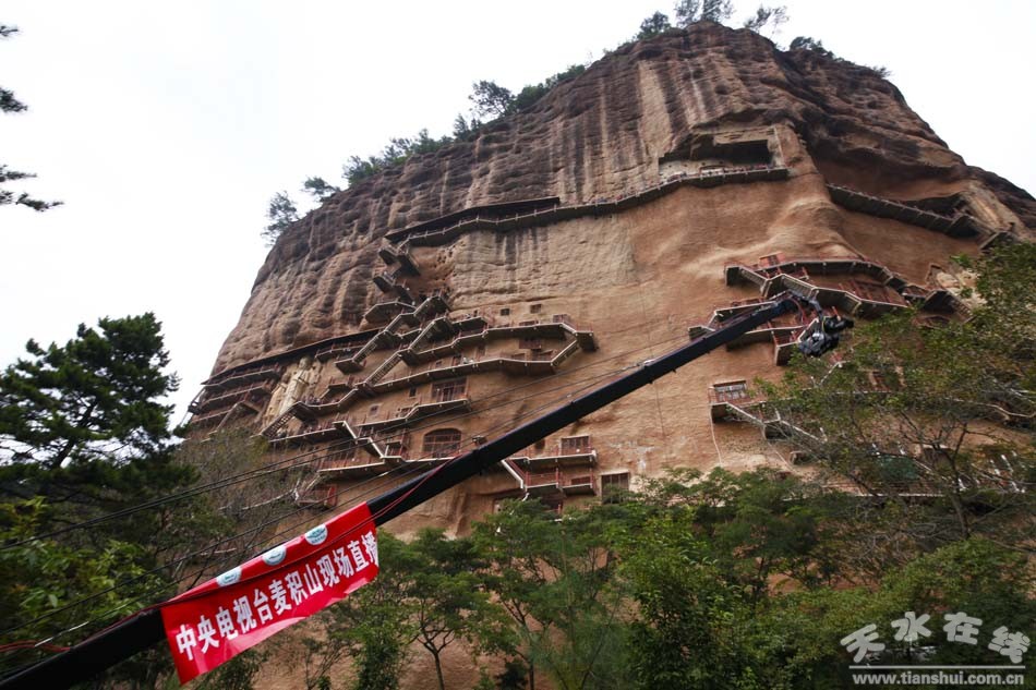 (10月5日,中央電視臺(tái)新聞?lì)l道8時(shí)半、14時(shí)、16時(shí)連續(xù)三次現(xiàn)場(chǎng)直播麥積山石窟景觀及旅游情況。)