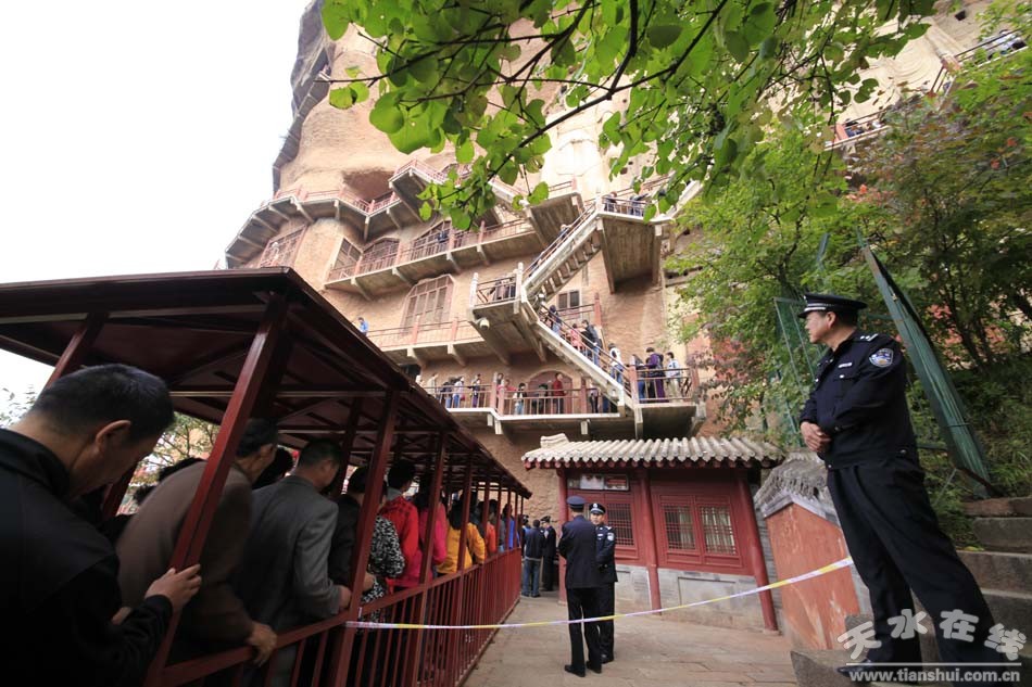 (麥積山石窟人流如織)