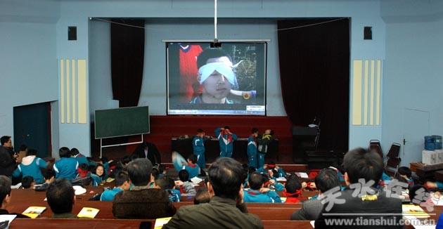 2012年11月19日下午,天水市人民防空辦公室,在市逸夫中學階梯教室舉辦防空知識教育觀摩活動。來自兩區(qū)教體局分管國防教育工作的局長、科室負責人、兩區(qū)城區(qū)初級中學分管校長及任課老師、逸夫初級中學的部分學生參加了觀摩活動。