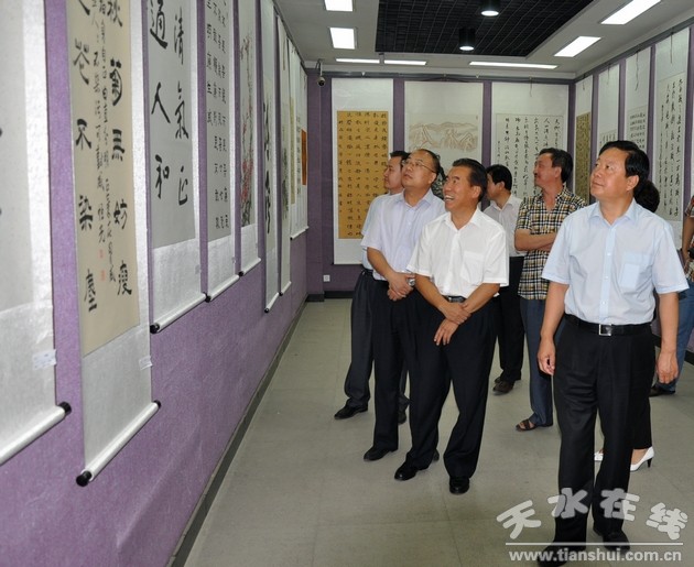 8月20日,天水“清風(fēng)頌”廉政主題書(shū)畫(huà)展在萬(wàn)壽宮開(kāi)展。市人大常委會(huì)主任柴金祥,市委副書(shū)記、市政協(xié)主席楊維俊,市委常委、市紀(jì)委書(shū)記李美華,市委常委、秦州區(qū)委書(shū)記張明泰,市委常委、宣傳部長(zhǎng)彭鴻嘉,副市長(zhǎng)霍衛(wèi)平出席開(kāi)展儀式。