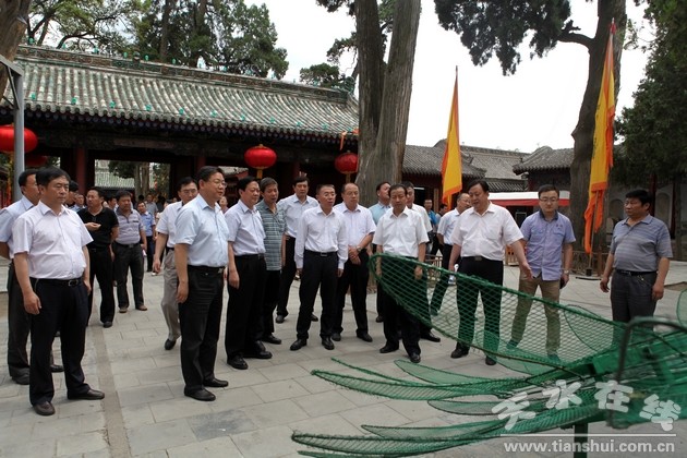 (在伏羲廟檢查公祭伏羲大典現(xiàn)場環(huán)境布置、大典儀程、宣傳報道、安全保衛(wèi)等工作)