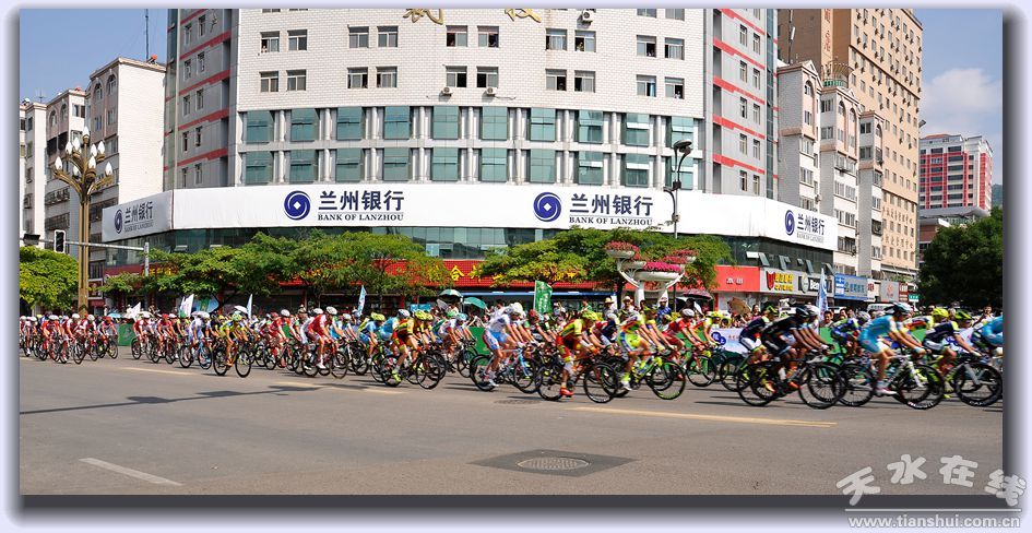 第十三屆“天佑德青稞酒杯”環(huán)青海湖國際公路自行車賽第九賽段天水繞圈賽7月15日在天水主城區(qū)進(jìn)行,來自世界五大洲22支參賽隊(duì)伍的198名運(yùn)動(dòng)員參加了角逐。 (攝影:月下鳳影 )