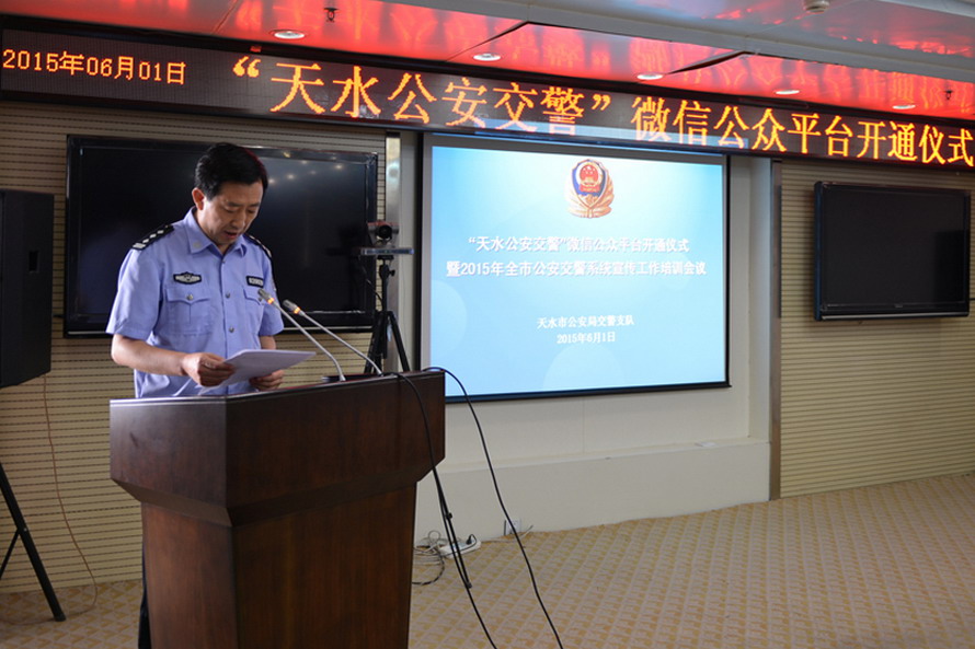 開通儀式結(jié)束后,支隊召開2015年全市公安交警系統(tǒng)宣傳工作培訓(xùn)會議,對微信和微博“雙微”平臺管理使用、手機短信告知系統(tǒng)應(yīng)用、“天水交警”網(wǎng)規(guī)范信息發(fā)布等自媒體宣傳工作進行了專題講座,并就2015年“文明交通行動計劃”重點工作及推進計劃組織了學(xué)習(xí)討論。