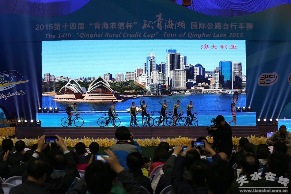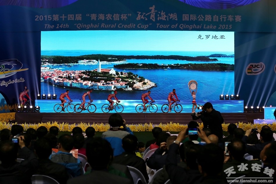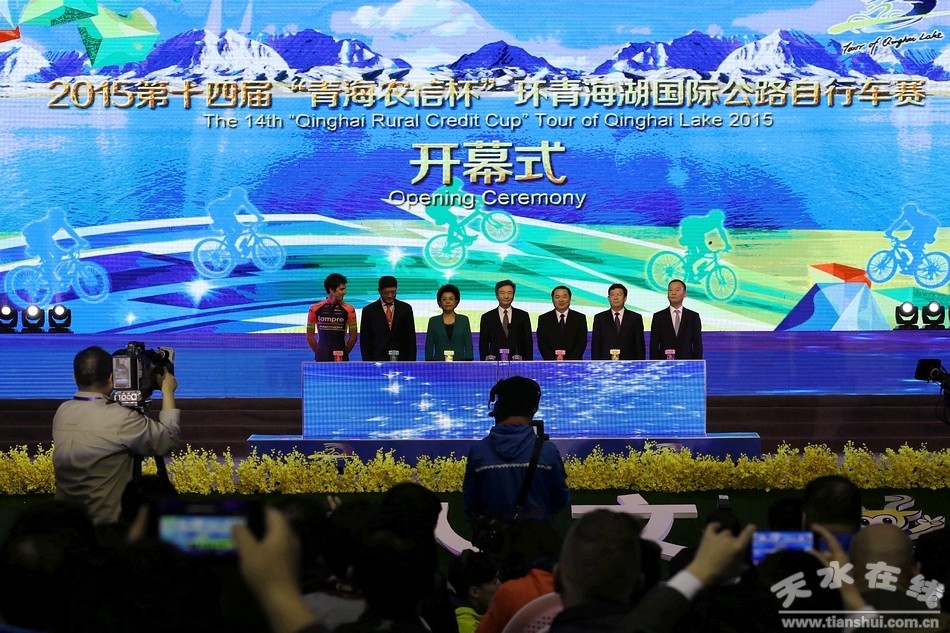 (全國政協(xié)副主席羅富和宣布第十四屆“青海農(nóng)信杯”環(huán)青海湖國際公路自行車賽開幕 天水在線攝)