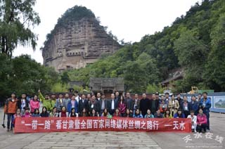 9月24日早晨,“一帶一路看甘肅”2015全國百家網(wǎng)絡(luò)媒體的記者們便乘車前往花牛蘋果種植示范基地。車輛沿著盤山公路蜿蜒而上,兩旁翠枝掩映,綠意盎然。大約半小時后,車輛到達(dá)山頂,視野豁然開朗,大片果園映入眼簾,紅彤彤的蘋果掛滿了枝頭,調(diào)皮的露珠黏附在蘋果表面,一片生機(jī)勃勃。