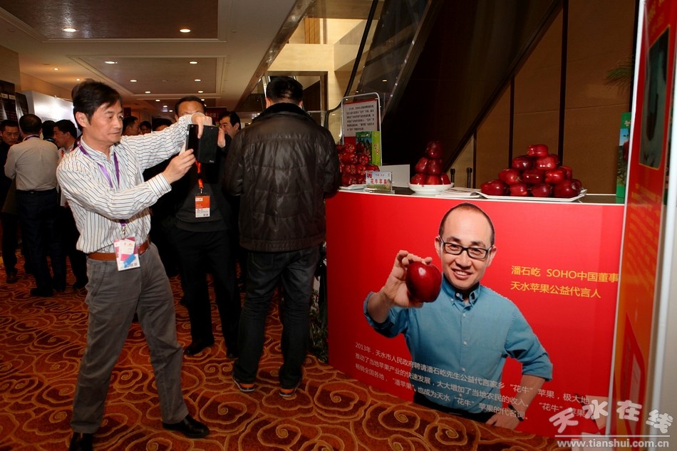 (“花!碧O果公益代言人、天水籍名人潘石屹向上千位企業(yè)家推介花牛蘋果)